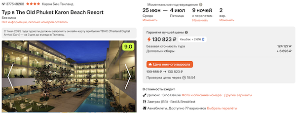 The Old Phuket Karon Beach Resort 4* с завтраками 65.400 рублей за человека (130.800 рублей за двоих)