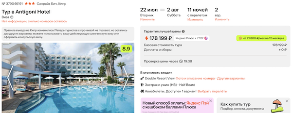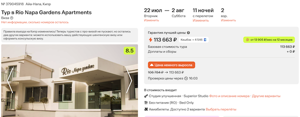 Туры из Москвы на Кипр от 42.300 рублей за человека.
