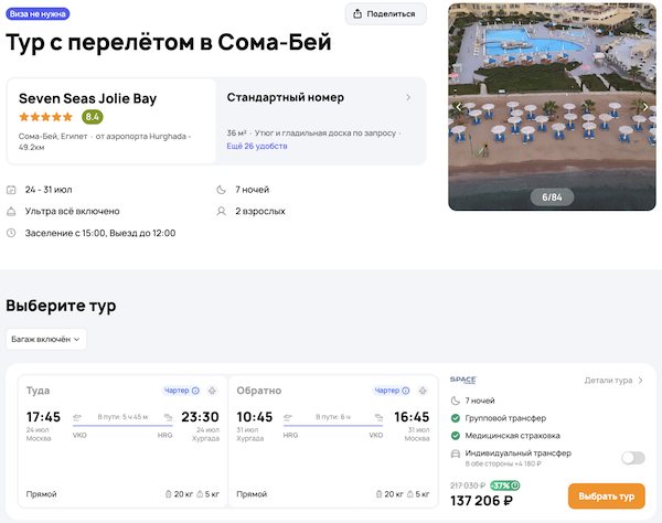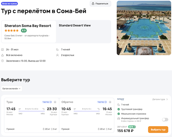Sheraton Soma Bay Resort 77.800 рублей за человека (155.700 рублей за двоих)