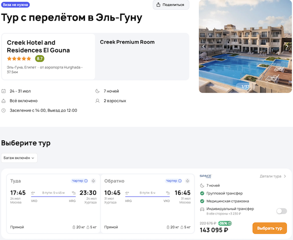 Creek Hotel and Residences El Gouna 71.500 рублей за человека (143.100 рублей за двоих)