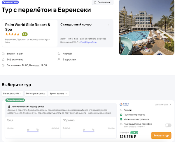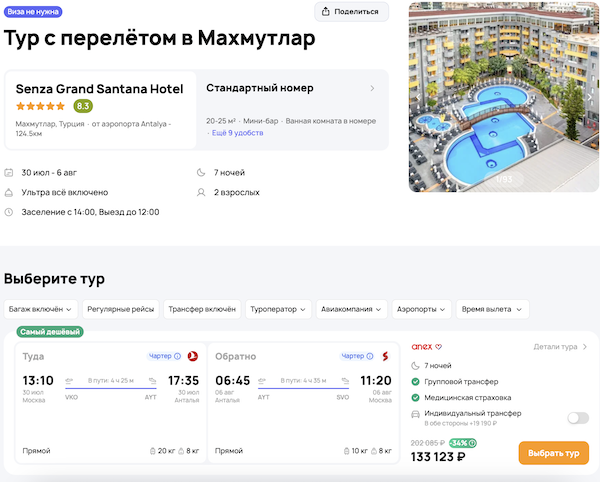 Стоимость в примерах указана за одного человека при условии поездки вдвоем, стоимость туров для одного человека можно посмотреть здесь или на страницах отелей.