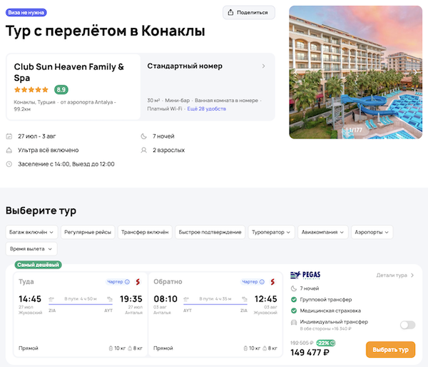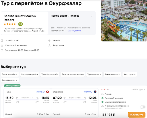 Стоимость в примерах указана за одного человека при условии поездки вдвоем, стоимость туров для одного человека можно посмотреть здесь или на страницах отелей.