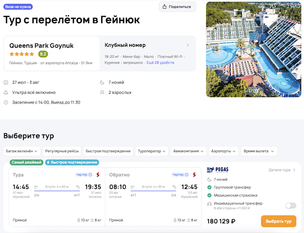 Queens Park Goynuk 90.000 рублей за человека (180.100 рублей за двоих)