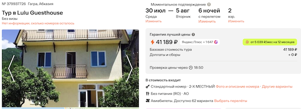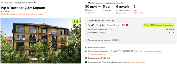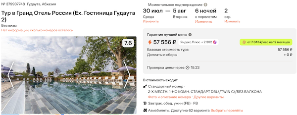 Горящие туры из Москвы в Абхазию от 20.600 рублей за человека.