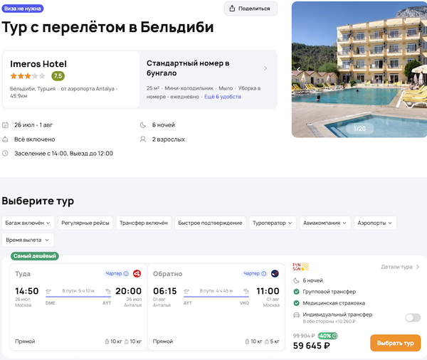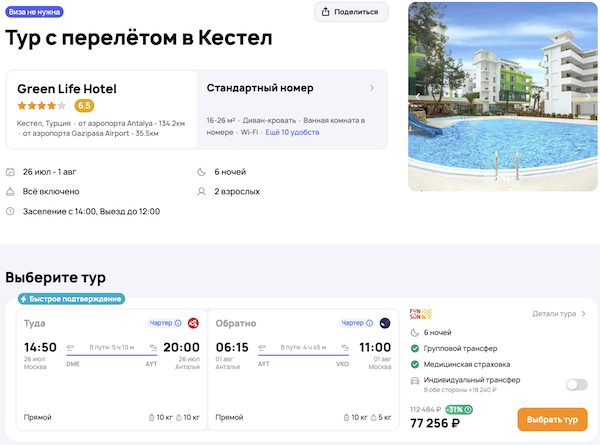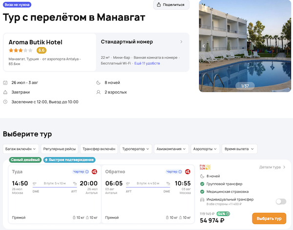 — прямой перелет в Анталью и обратно;