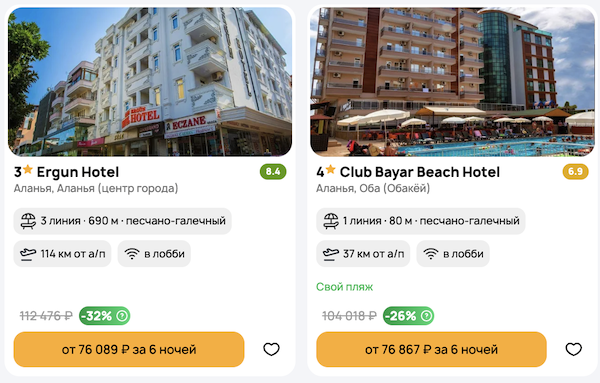 Стоимость в примерах указана за одного человека при условии поездки вдвоем. Стоимость туров для 1 человека можно посмотреть здесь или на странице отелей, изменив количество туристов.