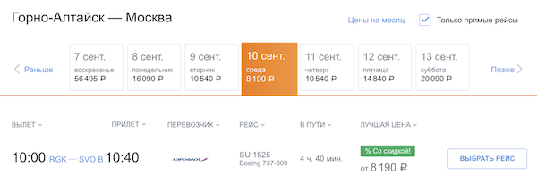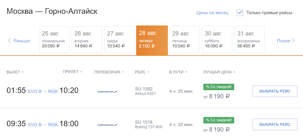 На Алтай в конце лета: из Москвы в Горно-Алтайск Аэрофлотом 16.400 рублей туда-обратно.