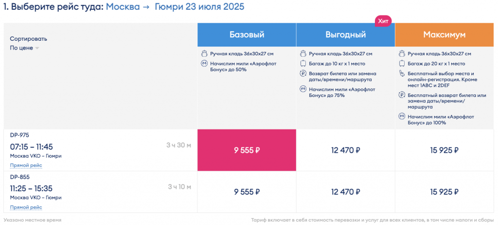 Минимальные цены на вылеты из Москвы 23, 24 и 25 июля. Обратно 25 или 27 июля (на 1.400 рублей дороже 28 и 29 июля).