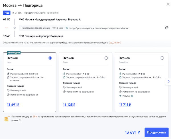 Рейсы выполняются авиакомпанией Pegasus с пересадкой в Измире.