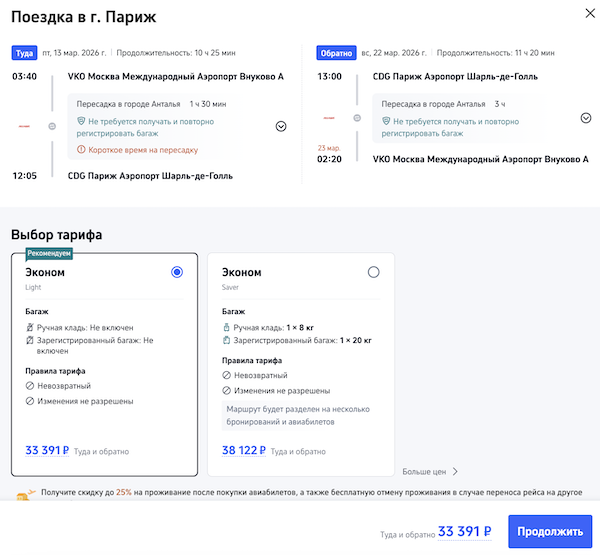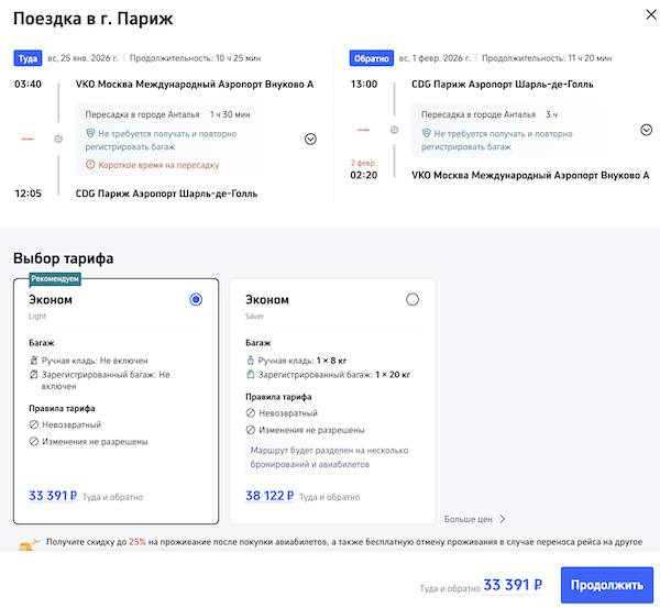 Билеты из Москвы в Париж в ноябре-марте от 33.400 рублей туда-обратно.