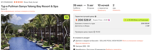 Горящие туры из Санкт-Петербурга на остров Хайнань от 77.500 рублей за человека.