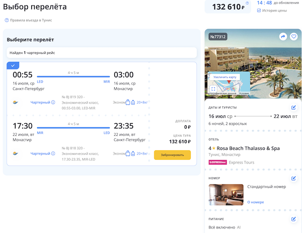 — прямой перелет в Монастир и обратно, авиакомпания Nouvelair;