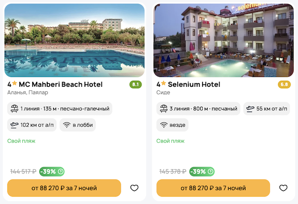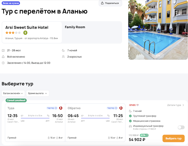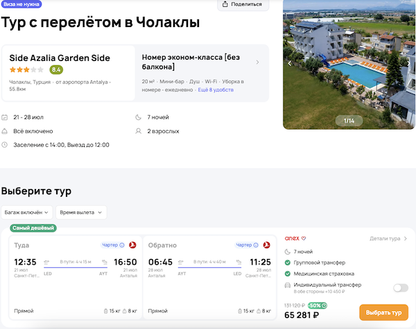 Стоимость в примерах указана за одного человека при условии поездки вдвоем. Стоимость туров для 1 человека можно посмотреть здесь или на странице отелей, изменив количество туристов.