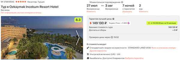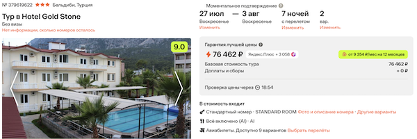 Стоимость в примерах указана за одного человека при условии поездки вдвоем. Стоимость туров для 1 человека можно посмотреть здесь или на странице отелей, изменив количество туристов.