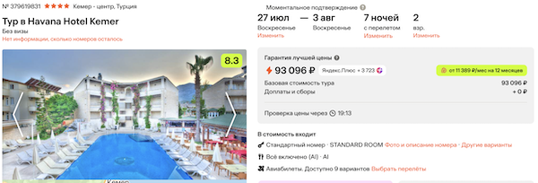 Havana Hotel Kemer 4* все включено 46.500 рублей за человека (93.100 рублей за двоих)