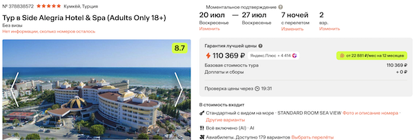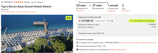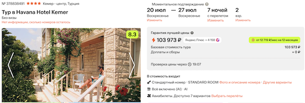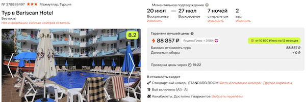 Стоимость в примерах указана за одного человека при условии поездки вдвоем. Стоимость туров для 1 человека можно посмотреть здесь или на странице отелей, изменив количество туристов.