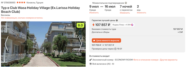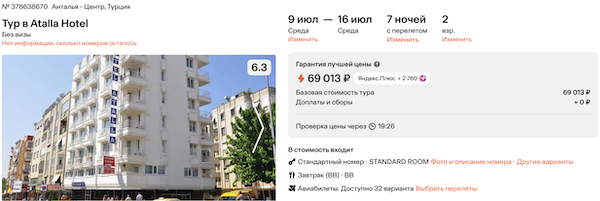 Горящие туры из Москвы в Турцию от 34.500 рублей за человека.