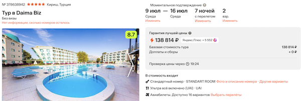 Daima Biz 5* ультра все включено 69.400 рублей за человека (138.800 рублей за двоих)