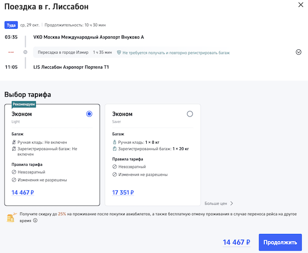 Из Москвы в Лиссабон с короткой пересадкой в Измире. Например, 29 октября