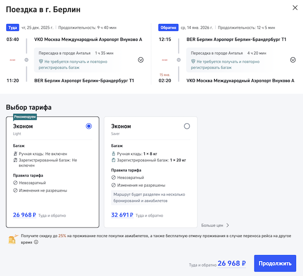 В Германию на Новый год: билеты из Москвы в Берлин 27.000 рублей туда-обратно.