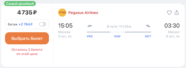 Рейсы выполняются авиакомпанией Pegasus с пересадкой в Стамбуле.
