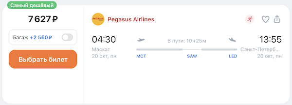 Маскат — Санкт-Петербург 20 октября