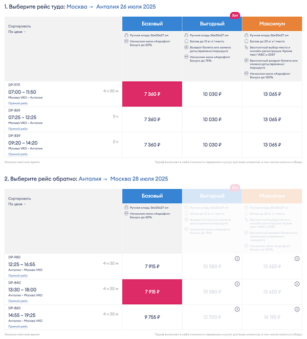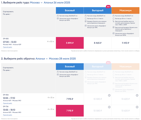 В Аланью: из Москвы утром в субботу (или пятницу), обратно в понедельник