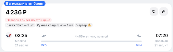 Горящие билеты на прямые рейсы из Москвы в Даламан от 15.400 рублей туда-обратно.