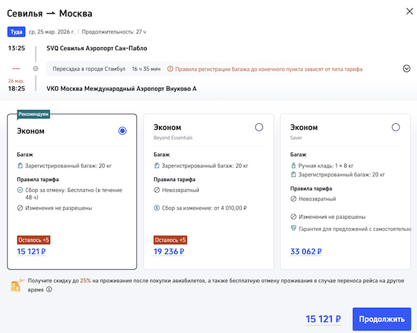 Рейсы выполняются авиакомпанией Pegasus с короткой пересадкой в Измире.