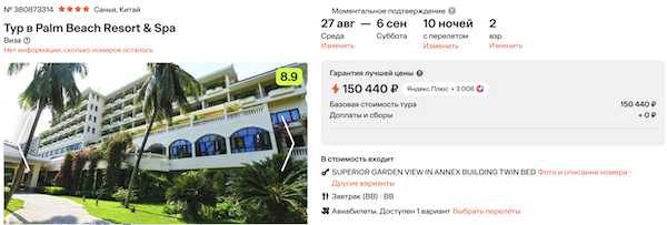 Туры из Санкт-Петербурга на остров Хайнань от 69.000 рублей за человека.