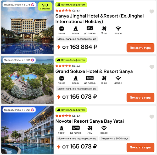 — прямой перелет в Санья и обратно, Аэрофлот;