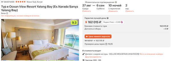 Ocean View Resort Yalong Bay 5* с завтраками 81.000 рублей за человека (162.000 рублей за двоих)