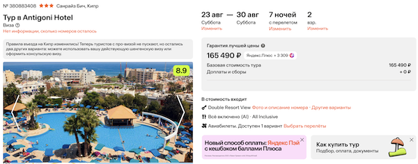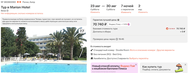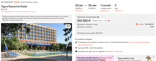 Туры из Москвы на Кипр на неделю в конце лета от 35.300 рублей за человека.