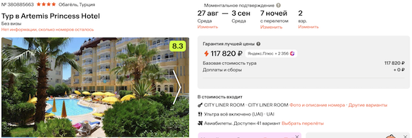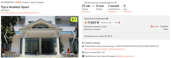 Anahtar Apart 3* 35.800 рублей за человека (71.600 рублей за двоих)