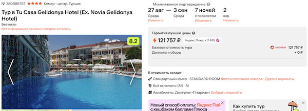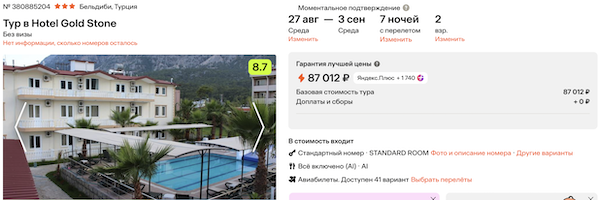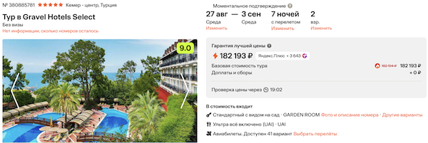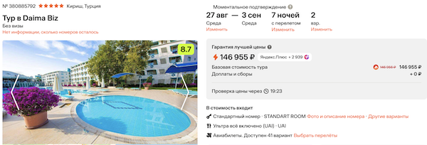 Даты поездки: с 27 августа по 3 сентября или соседние даты.