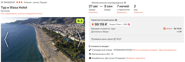 Стоимость в примерах указана за одного человека при условии поездки вдвоем. Стоимость туров для 1 человека можно посмотреть здесь или на странице отелей, изменив количество туристов.