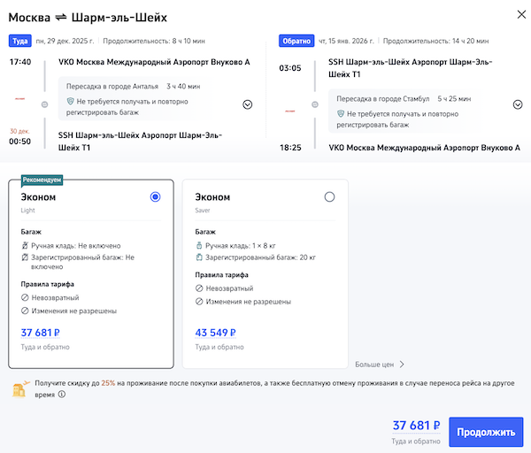 Рейсы выполняются авиакомпанией Pegasus с пересадкой в Анталье.