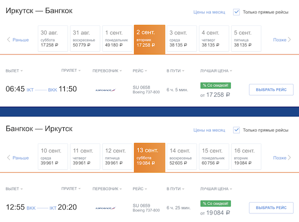 Распродажа билетов у Аэрофлота: скидки до 30% на рейсы в августе-сентябре.