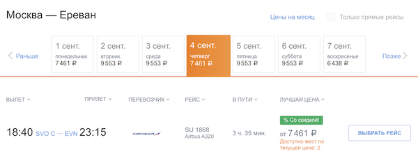 Распродажа билетов у Аэрофлота: скидки до 30% на рейсы в августе-сентябре.