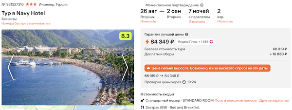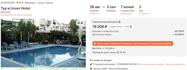Туры из Москвы в Мармарис на неделю в конце лета от 38.100 рублей за человека.
