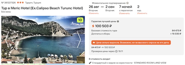 Meric Hotel 3* все включено 40.200 рублей за человека (100.500 рублей за двоих)