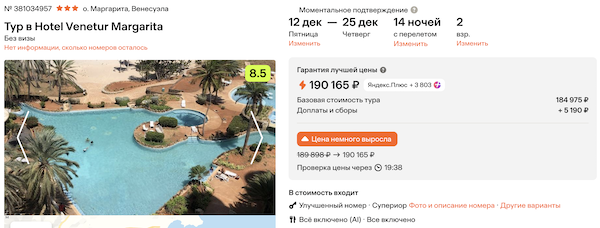 Туры из Москвы в Венесуэлу в декабре от 95.100 рублей за человека.