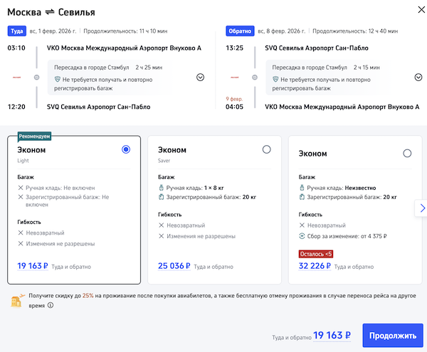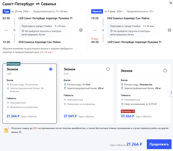Рейсы выполняются авиакомпанией Pegasus с короткой пересадкой в Стамбуле.
