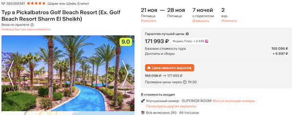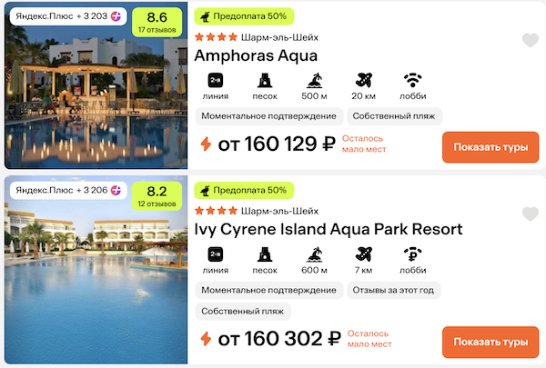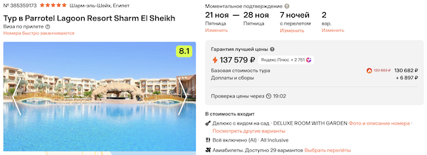 Стоимость в примерах указана за одного человека при условии поездки вдвоем, стоимость туров для одного человека можно посмотреть здесь или на страницах отелей.