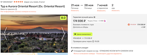 — прямой перелет в Шарм-эш-Шейх и обратно;