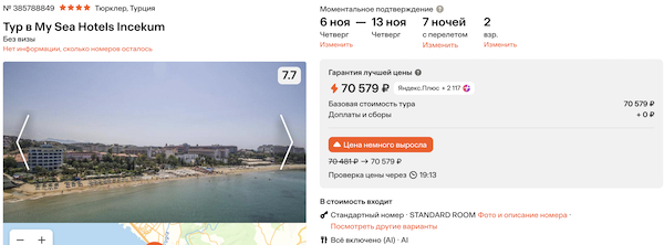 My Sea Hotels Incekum 4* 35.300 рублей за человека (70.600 рублей за двоих)