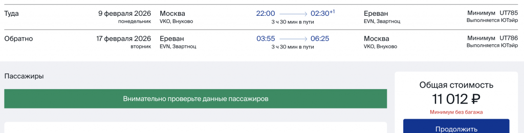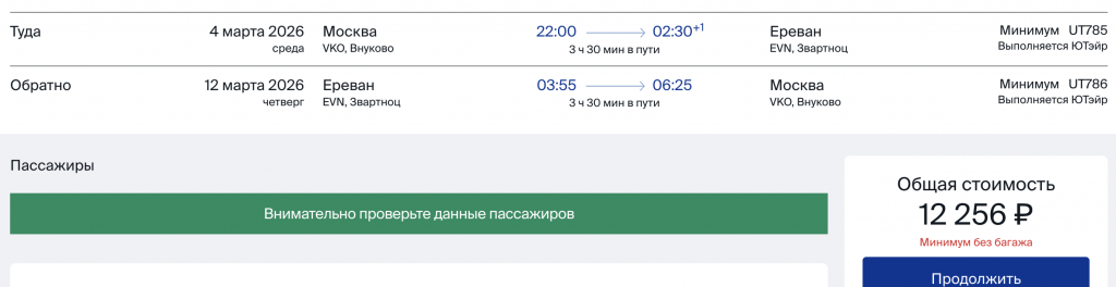 Из Москвы в Армению в феврале-марте: билеты в Ереван от 11.000 рублей туда-обратно.