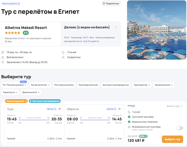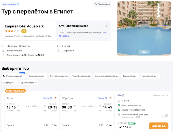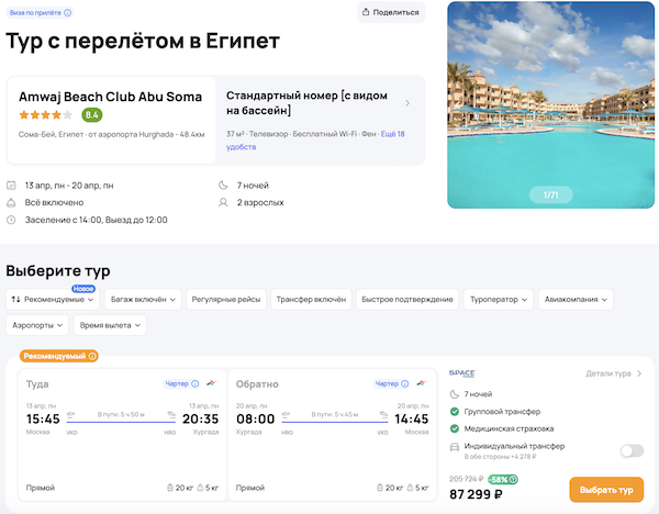 — прямой перелет в Хургаду и обратно, Red Sea Airlines;