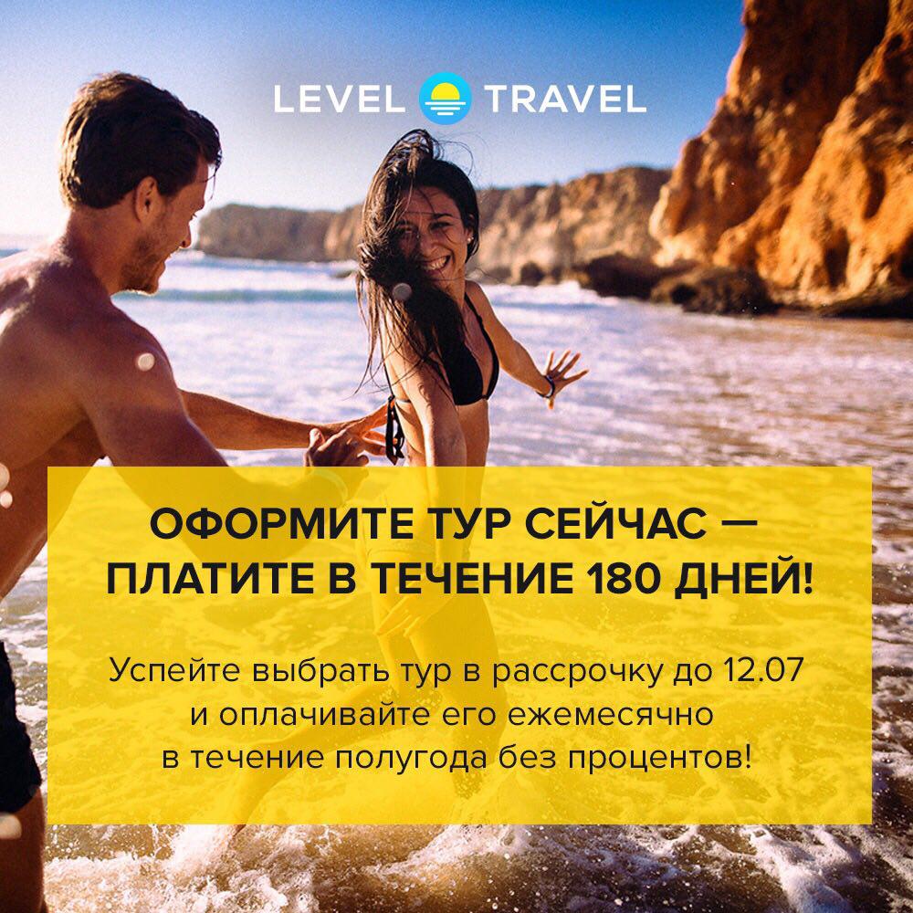 Классная акция у level travel: отдыхайте сейчас, а платите потом. Любые туры можно купить в беспроцентную рассрочку на 180 дней!