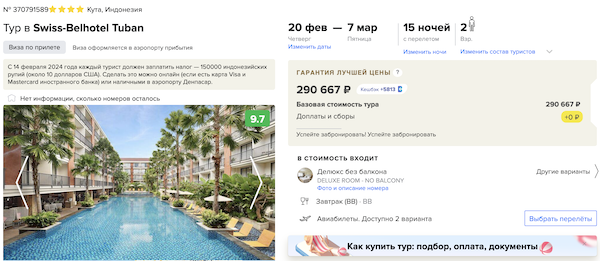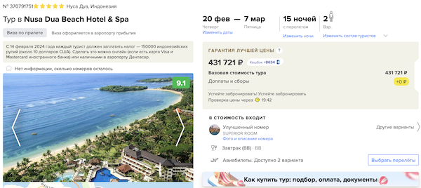 Туры из Москвы на Бали в феврале-марте: прямой перелет Аэрофлотом, трансферы и 2 недели в отеле от 134.100 рублей за человека.